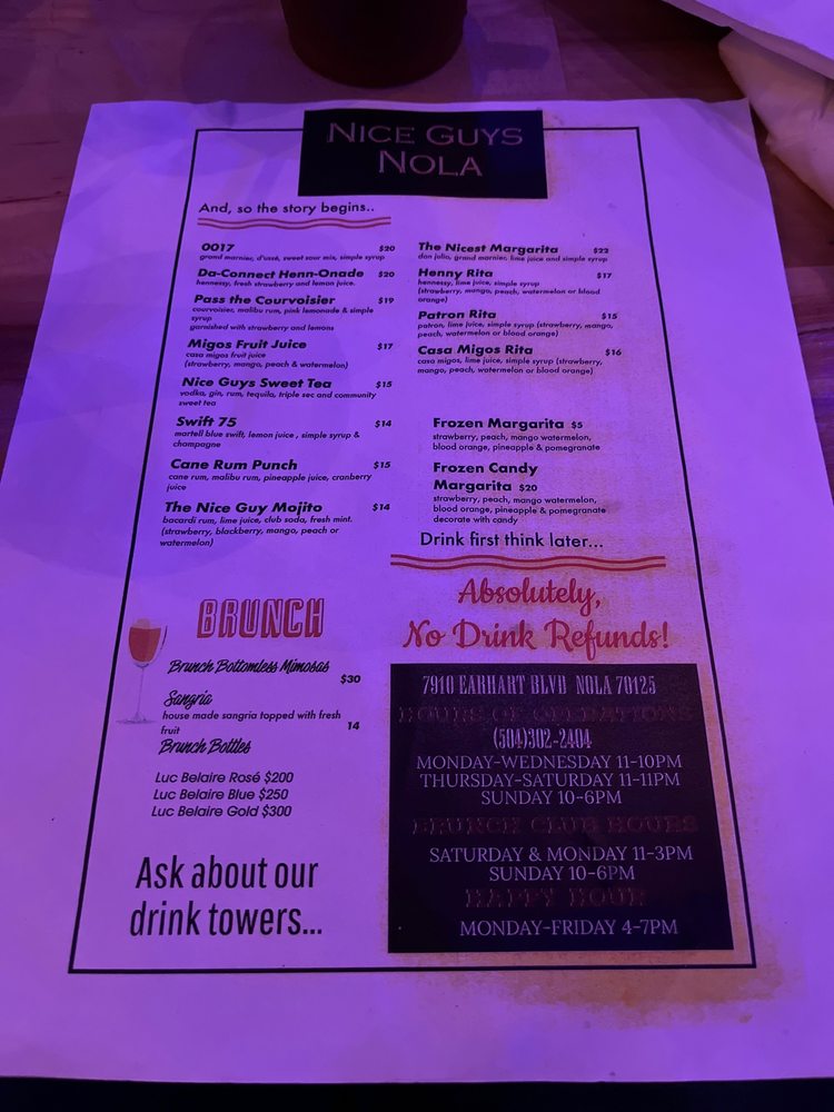 Excellent service and a laid-back vibe make Nice Guys Nola a must-visit for great food and fun, promising an experience you'll want to repeat.
